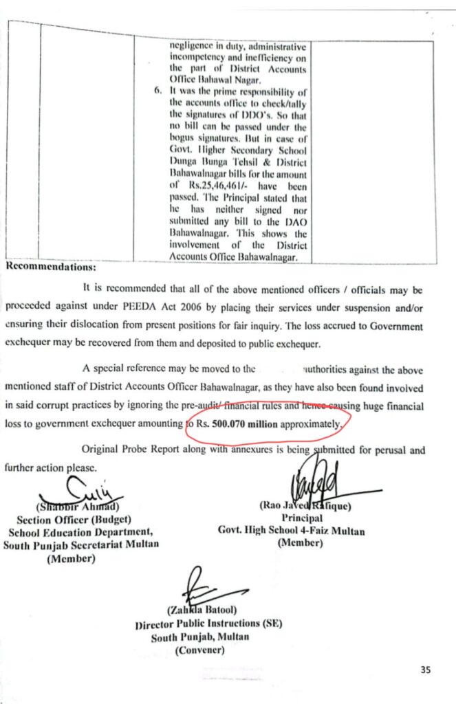 ضلع بہاولنگر کے 140 سے زائد ہائی اور ہائیر سکینڈری سکولز کو تزئین و آرائش کی غرض سے ایڈیشنل گرانٹ کی مد میں کروڑوں روپے جاری کیے گئے۔ مگر یہ رقم سکولز میں خرچ کرنے کی بجائے خرد برد کر لی گئی۔ کرپشن کی اس بڑی واردات کے بعد سیکرٹری سکول ایجوکیشن ساؤتھ پنجاب نے تین رکنی انکوائری کمیٹی تشکیل دی۔ اس انکوائری کمیٹی نے مختلف سکولوں کا دورہ کیا اور ایڈیشنل گرانٹ کے اخراجات کا جائزہ لیا۔ اس تین رکنی انکوائری کمیٹی نے ابتدائی رپورٹ سیکرٹری سکول ایجوکیشن ڈیپارٹمنٹ پنجاب کو پیش کی۔ اس رپورٹ کے مطابق 50 کروڑ روپے سے زائد کی کرپشن کے ثبوت سامنے ائے۔