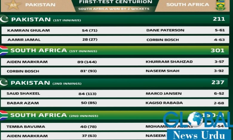 جنوبی افریقہ نے پاکستان کے خلاف پہلا ٹیسٹ میچ دو وکٹوں سے جیت لیا